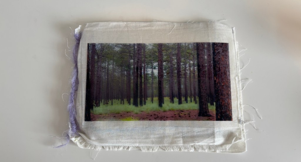 Fiber book made from linen, transparent print, mohair, and machine embroidery.